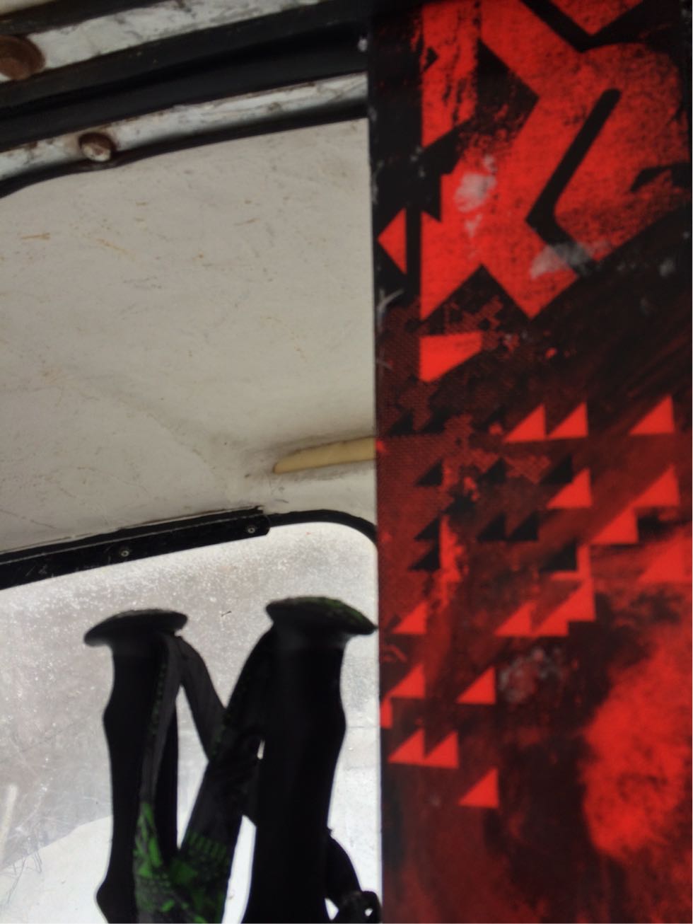 スキーがラックに入らず、持ち込んで、挟まれてます。。。