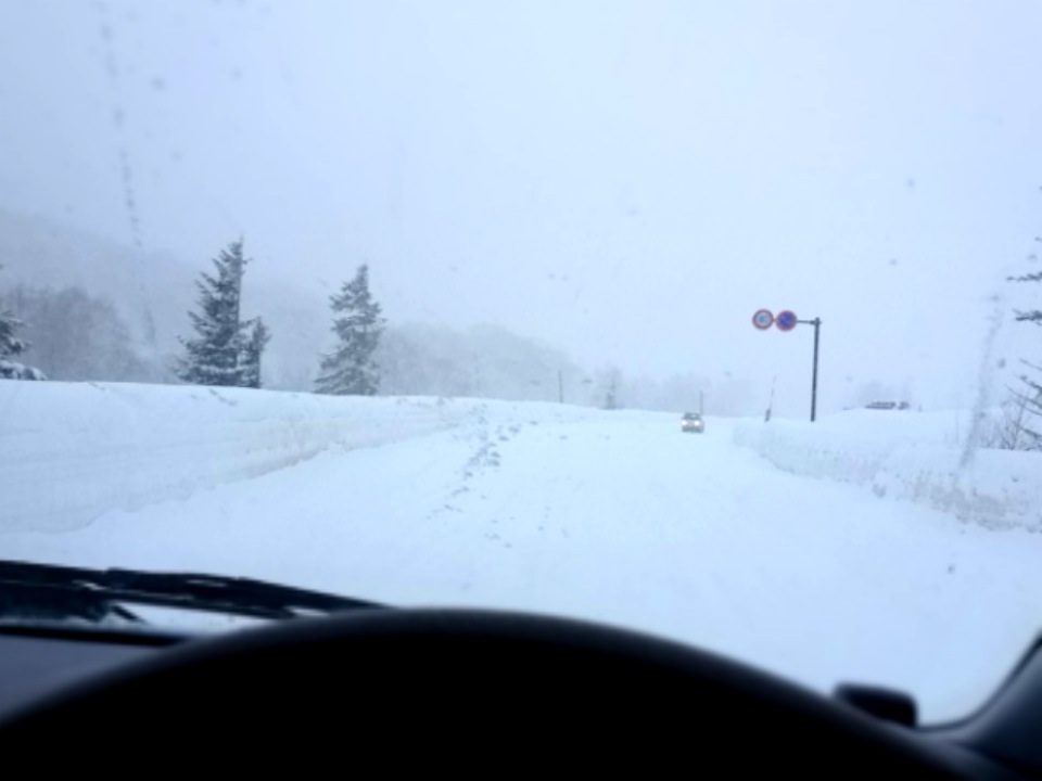 出発当時は雪が降ってましたが、麓へ降りると雪は止んでいて、所々山間部では雪が舞ってましたが、ほぼ道はDRY。