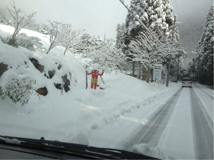 道中「鬼の里」を出迎える鬼も寒そうな光景に!