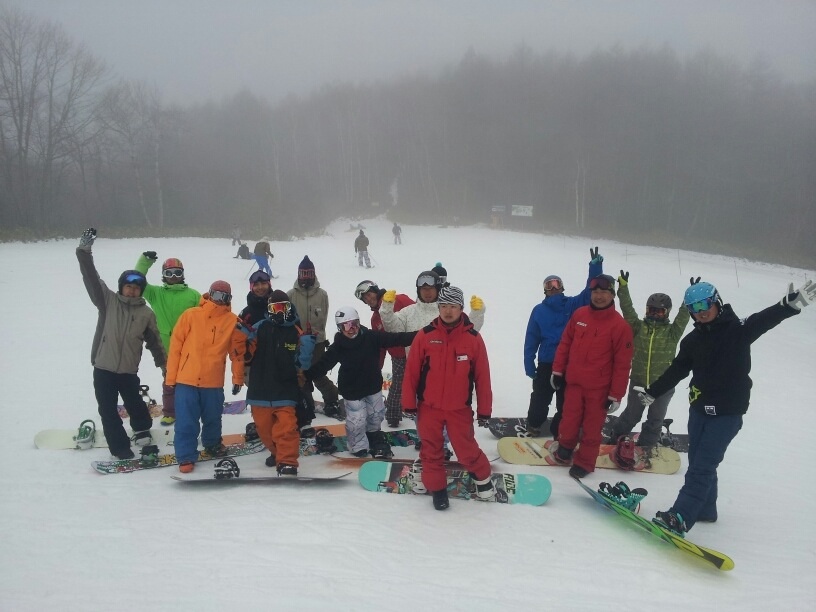 朝は6時半の体操から始まり、8時半からゲレンデへ
