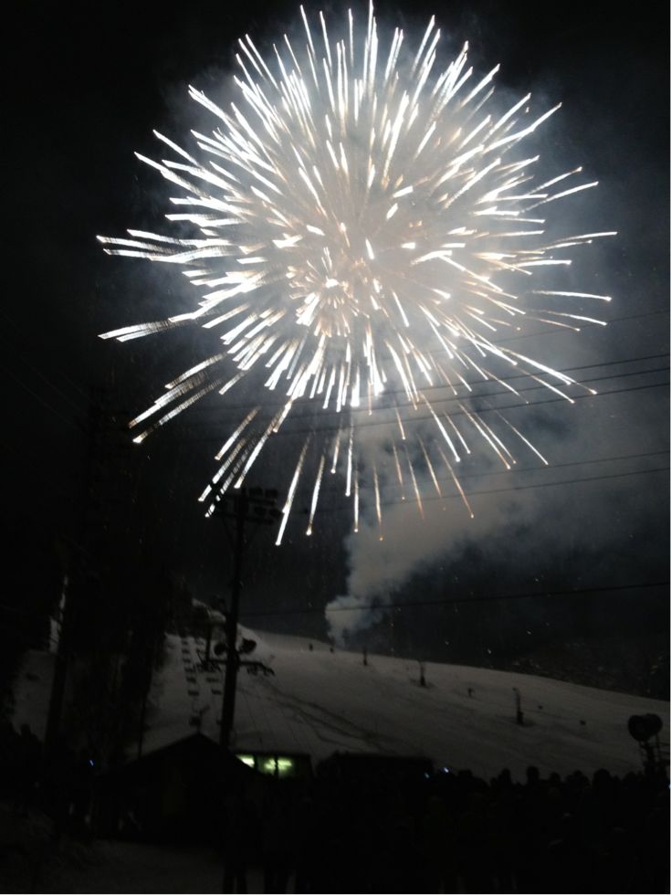 村内の有名スキーヤーや八方スキー学校のスタッフによるデモンストレーションや花火があがり、とっても華やかな一夜でした。