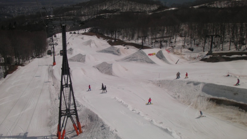ゴンドラから見るスノーパークも、ハーフパイプがクローズしてしまった他は、ほぼシーズン中と変わらない状況を保っています。