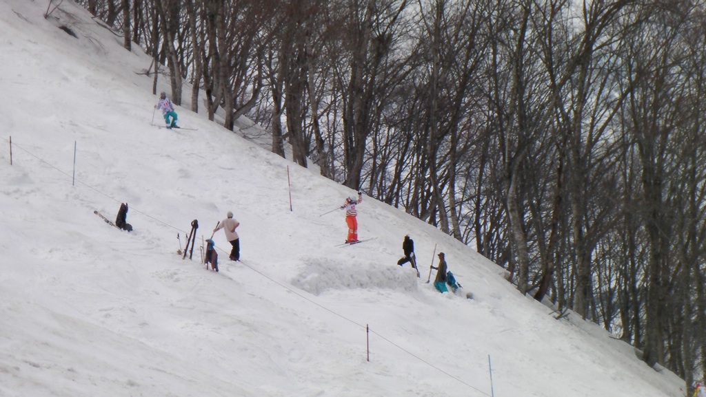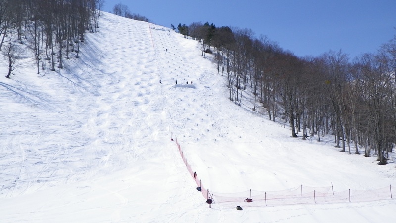 明日から行われる全日本スキー連盟のモーグル記録会が行われるためのコース作りがされていました。