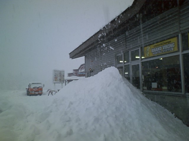 ・・・が、今朝は強風で、リフト/ゴンドラは運休。。。
