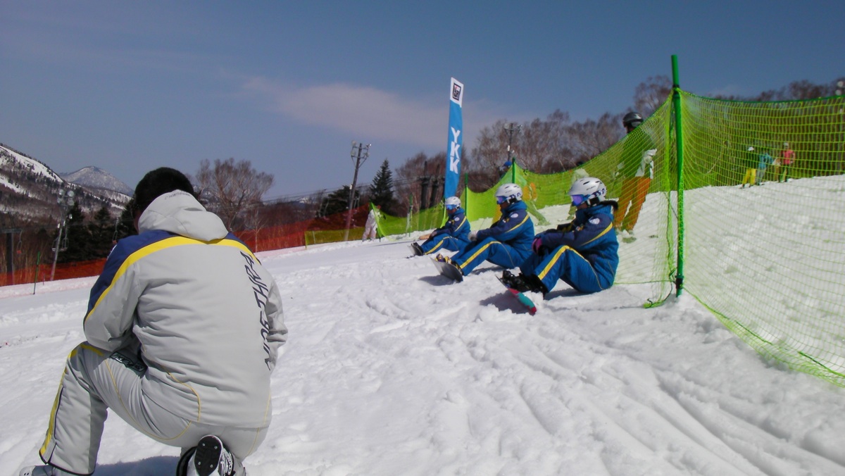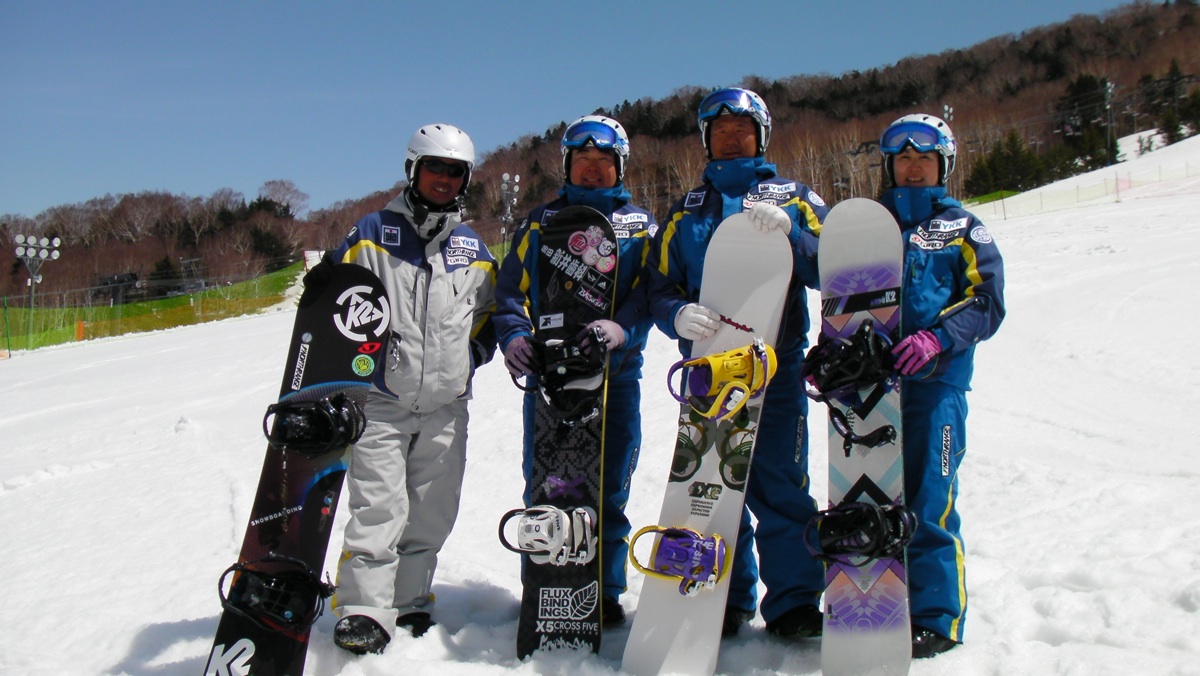 今期限りで?(本当に?)スノーボードデモを引退する小池デモ(画像右から2人目)。